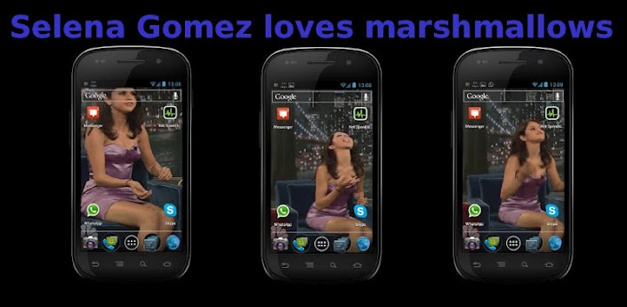 Selena Gomez eating a marshmallow live wallpaper